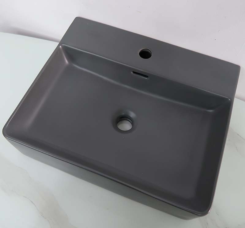陶器製でシンプルな洗面ボウル。