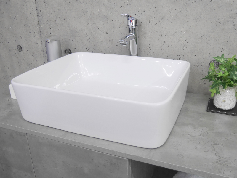 陶器製でシンプルな洗面ボウル。