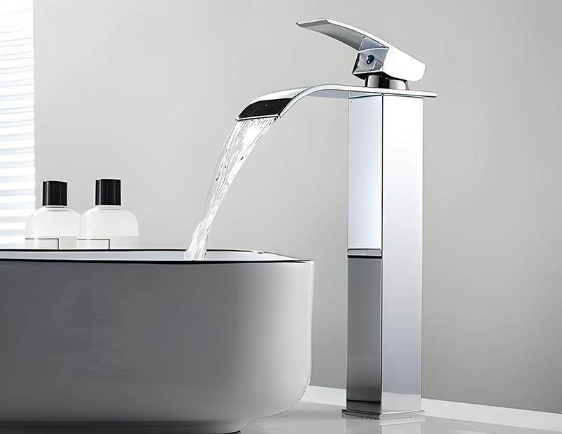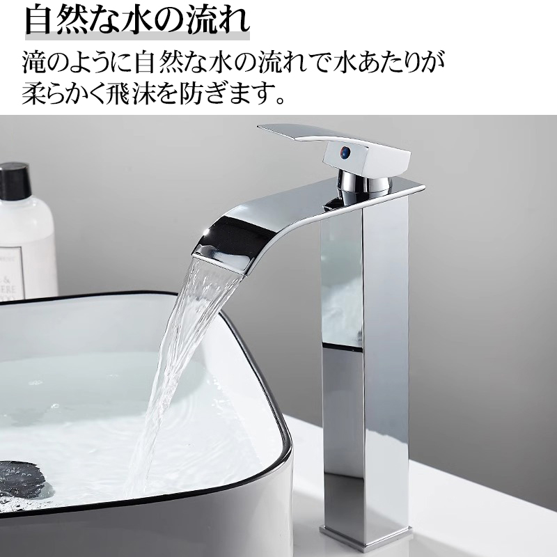 滝のように自然な水の流れで水あたりが柔らかく飛沫を防ぎます。