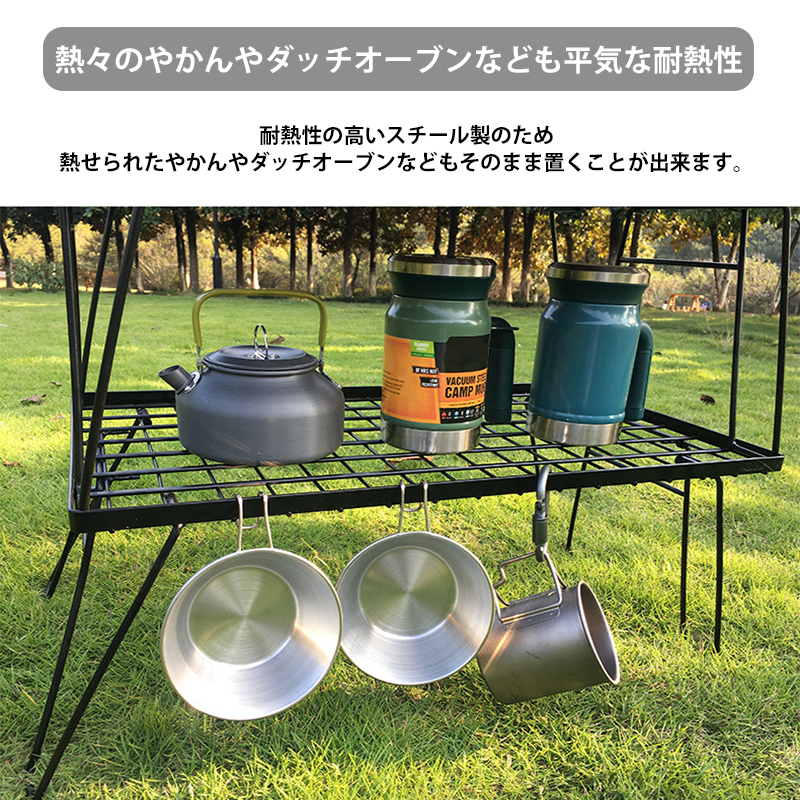 耐熱性の高いスチール製のため熱せられたやかんやダッチオーブンなどもそのまま置くことが出来ます。