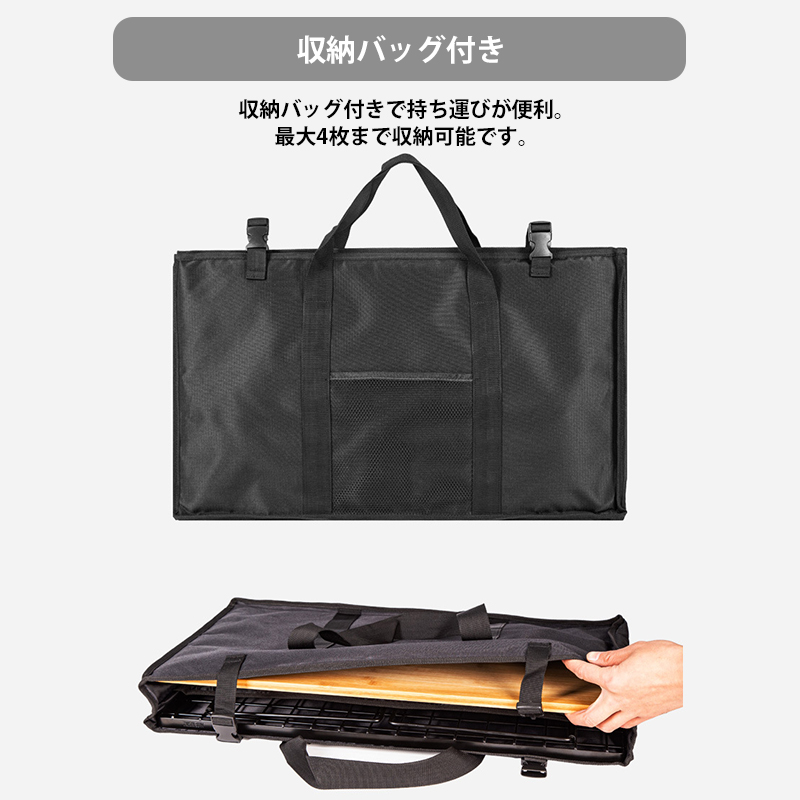 収納袋付きで持ち運びが便利。最大4枚まで収納可能です。