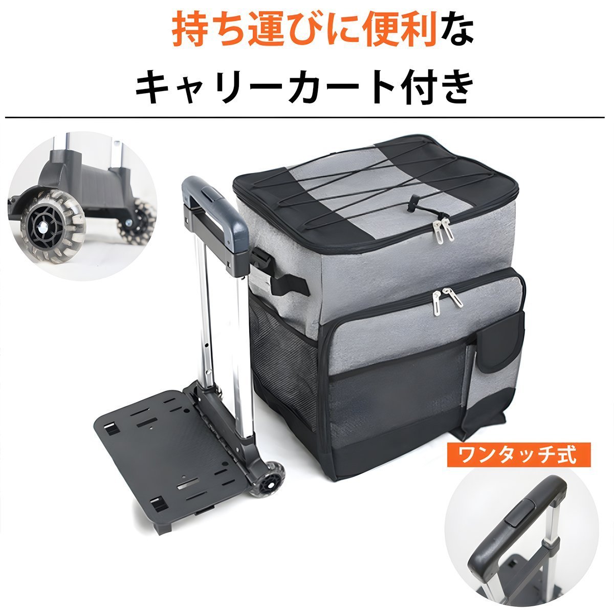 中に物を入れた状態でも付属のキャリーカートに乗せてラクラク持ち運び可能♪