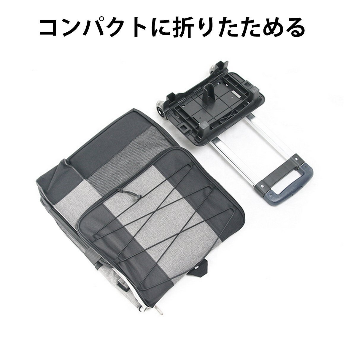 キャリーカートはワンタッチで伸び縮みする簡単設計。