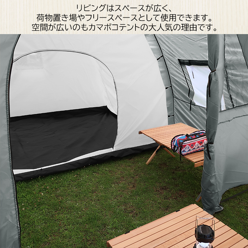 大人6人分の就寝スペース、そしてリビングスペースを備えた計3ルームテントです!