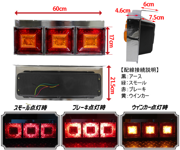 TT-54 LED クリスタルカット 角型3連テールランプ