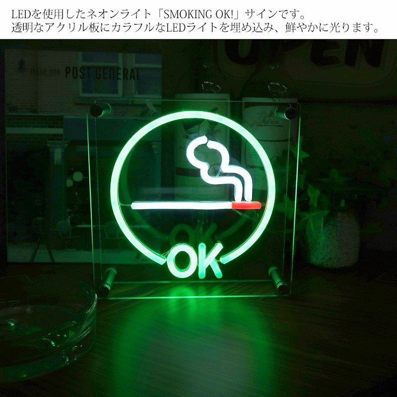 LEDを使用したネオンライト「SMOKING OK!」サインです。
