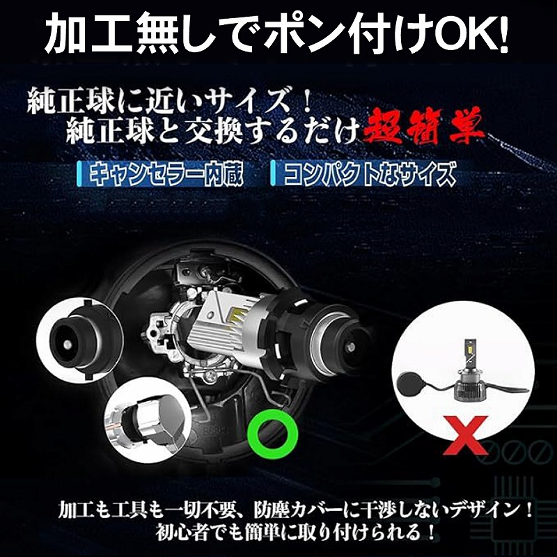 純正バルブを外してポン付けでの取り付け可能で、愛車の純正配線を外す必要はありません