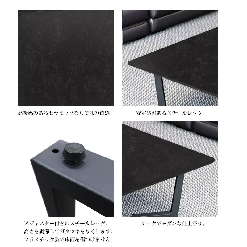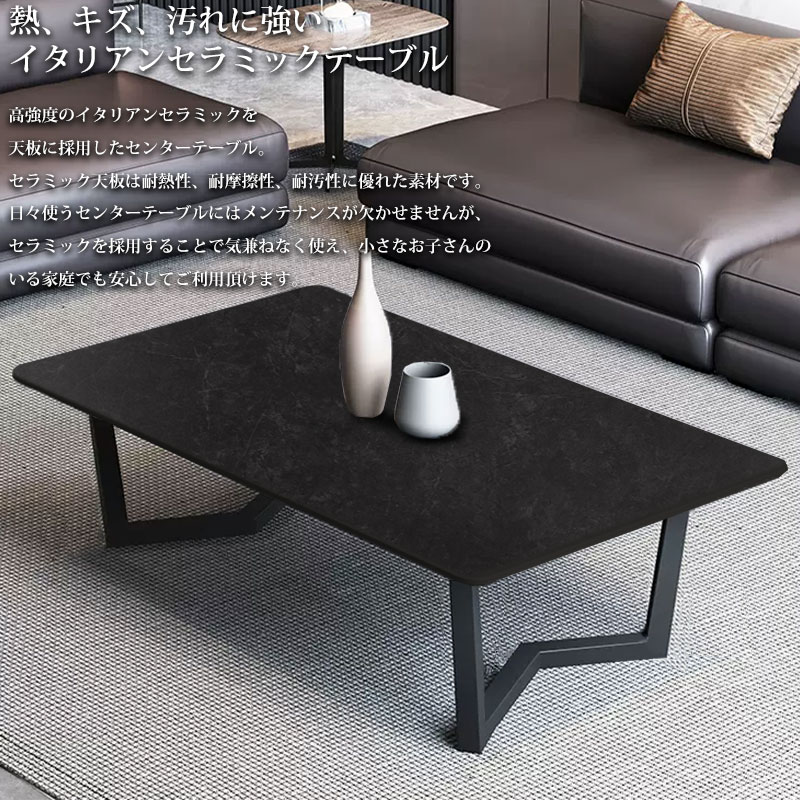 高強度のイタリアンセラミックを天板に採用したセンターテーブル。