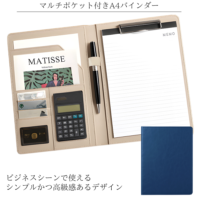上質なPUレザーを使用したA4対応の多機能バインダーです。