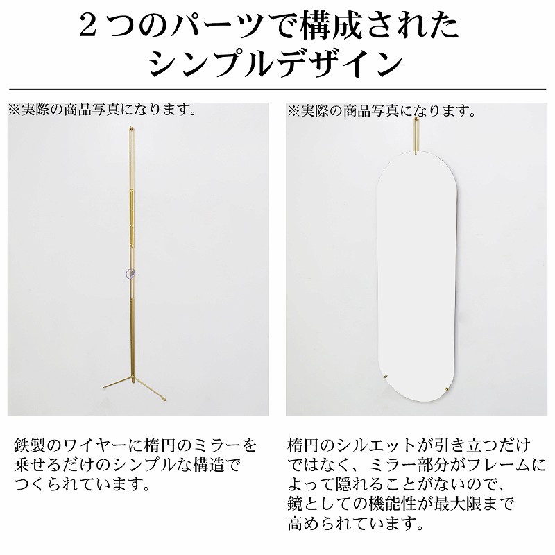 全身を映し出すミラーは円形シリーズ同様ミニマルなデザインとなっており。