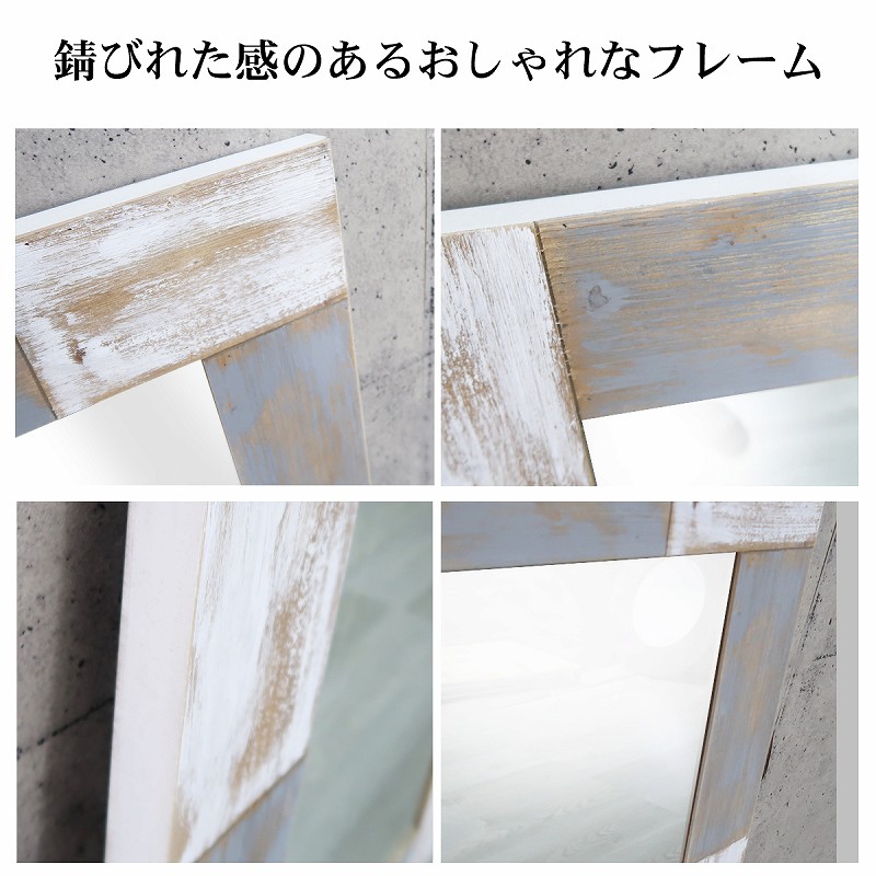 フレームは、グレー、ホワイトの木目板がランダムに配置されており、独特のパターンを形成しています。