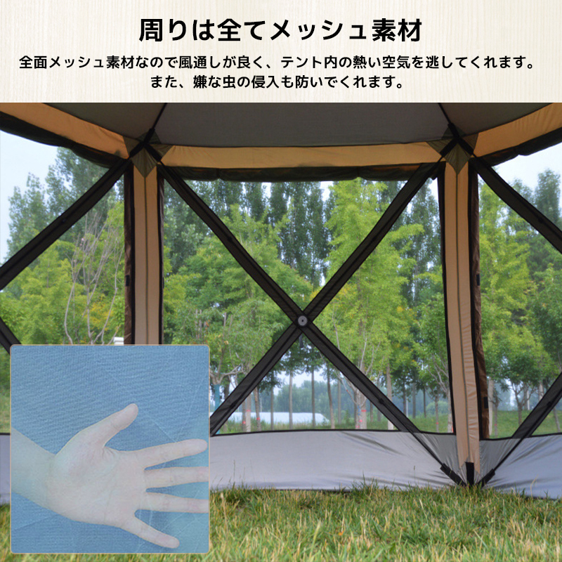 ポールとテントが一体型になっているので、説明書を読みながら、いくつものポールを組み立てたり…テントを張ったり…という面倒な作業が不要!