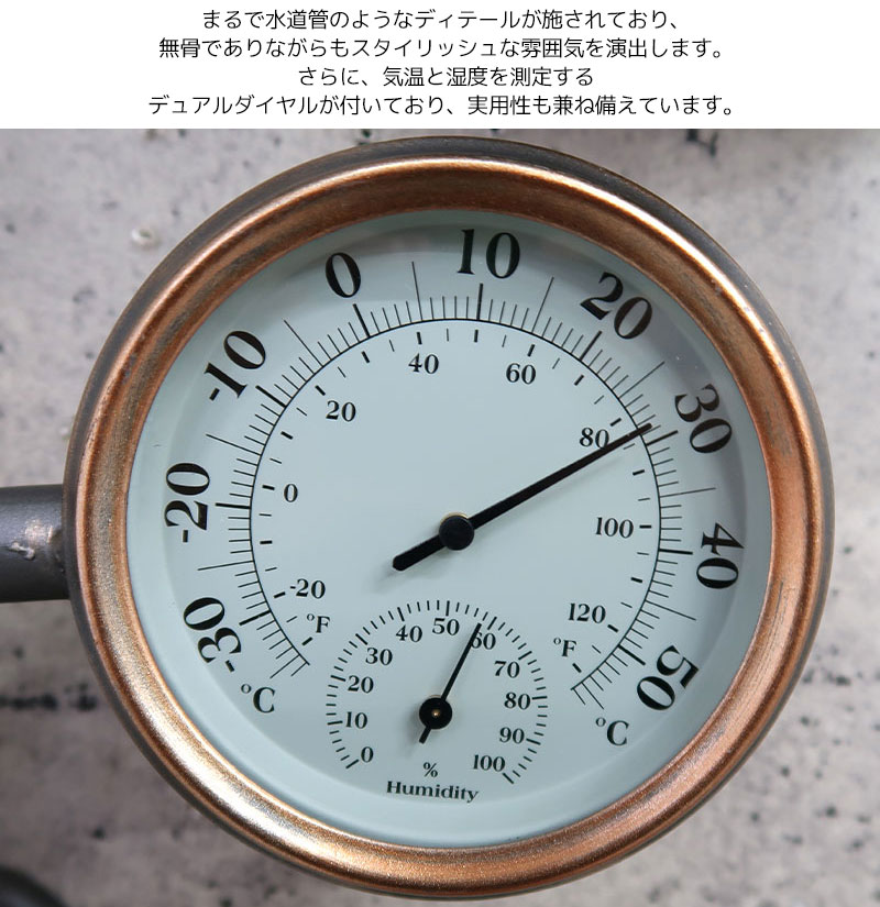 気温と湿度を測定するデュアルダイヤルが付いており、実用性も兼ね備えています。