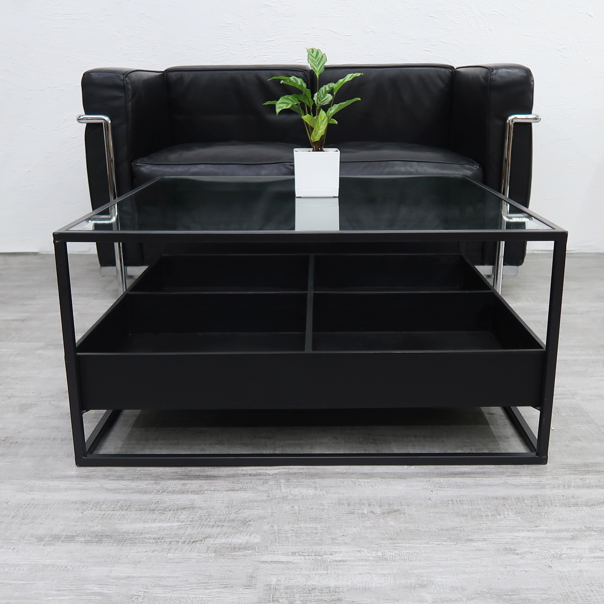 アルミフレームとガラス天板の異素材の組み合わせが独創性を放つセンターテーブル。