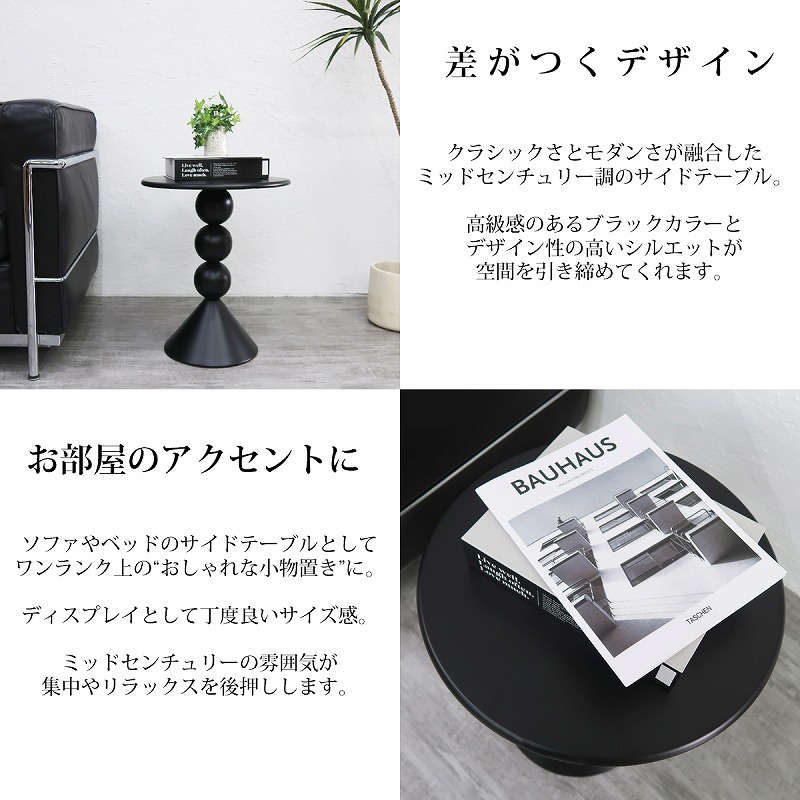 三角の土台に球体ベースを組み合わせた差がつくデザインテーブル。