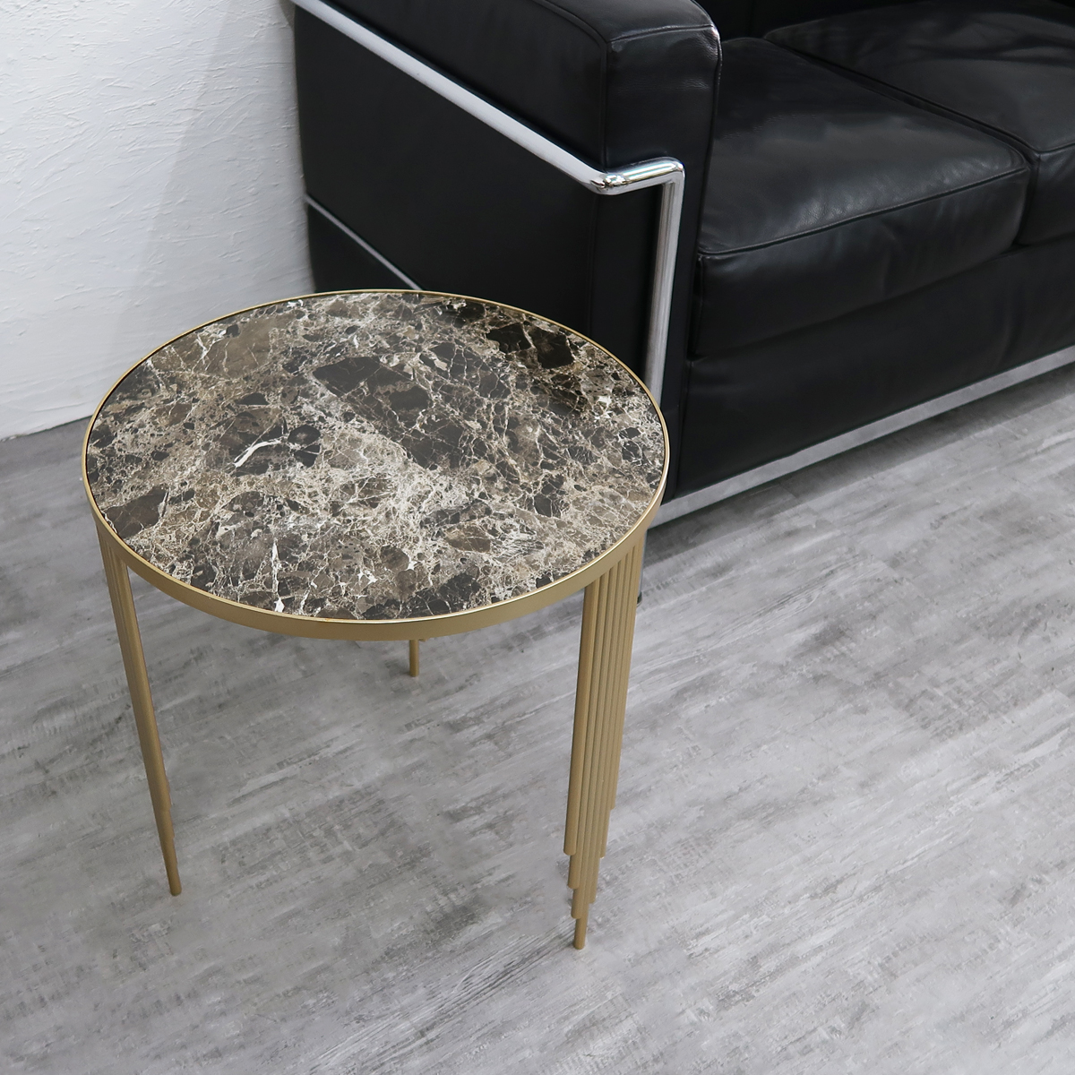 海外ホテルの様な空間を演出する大理石柄天板のサイドテーブル。