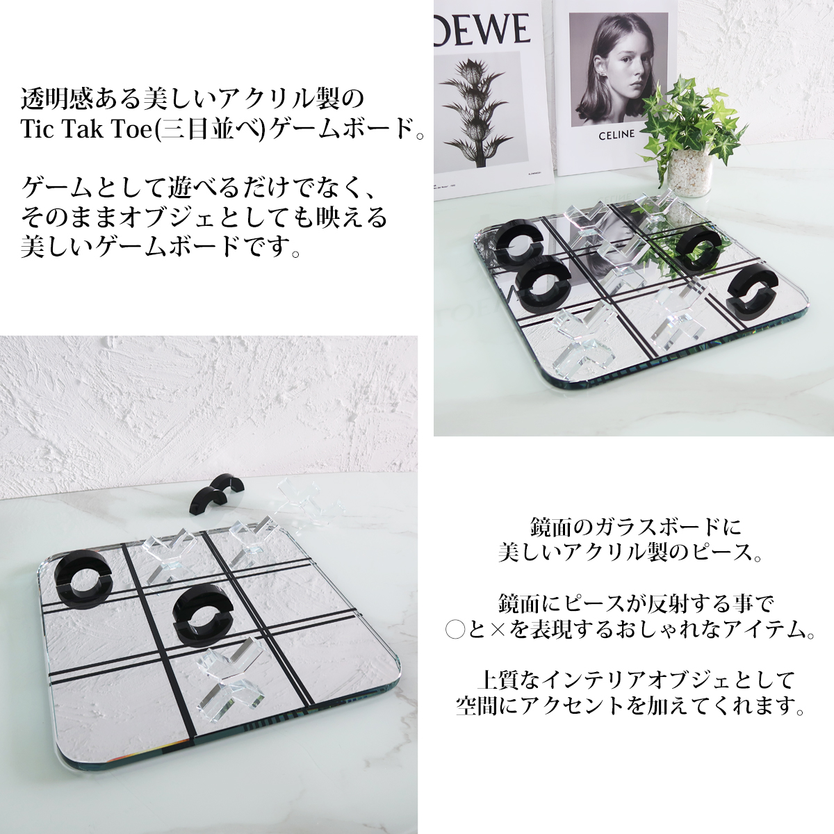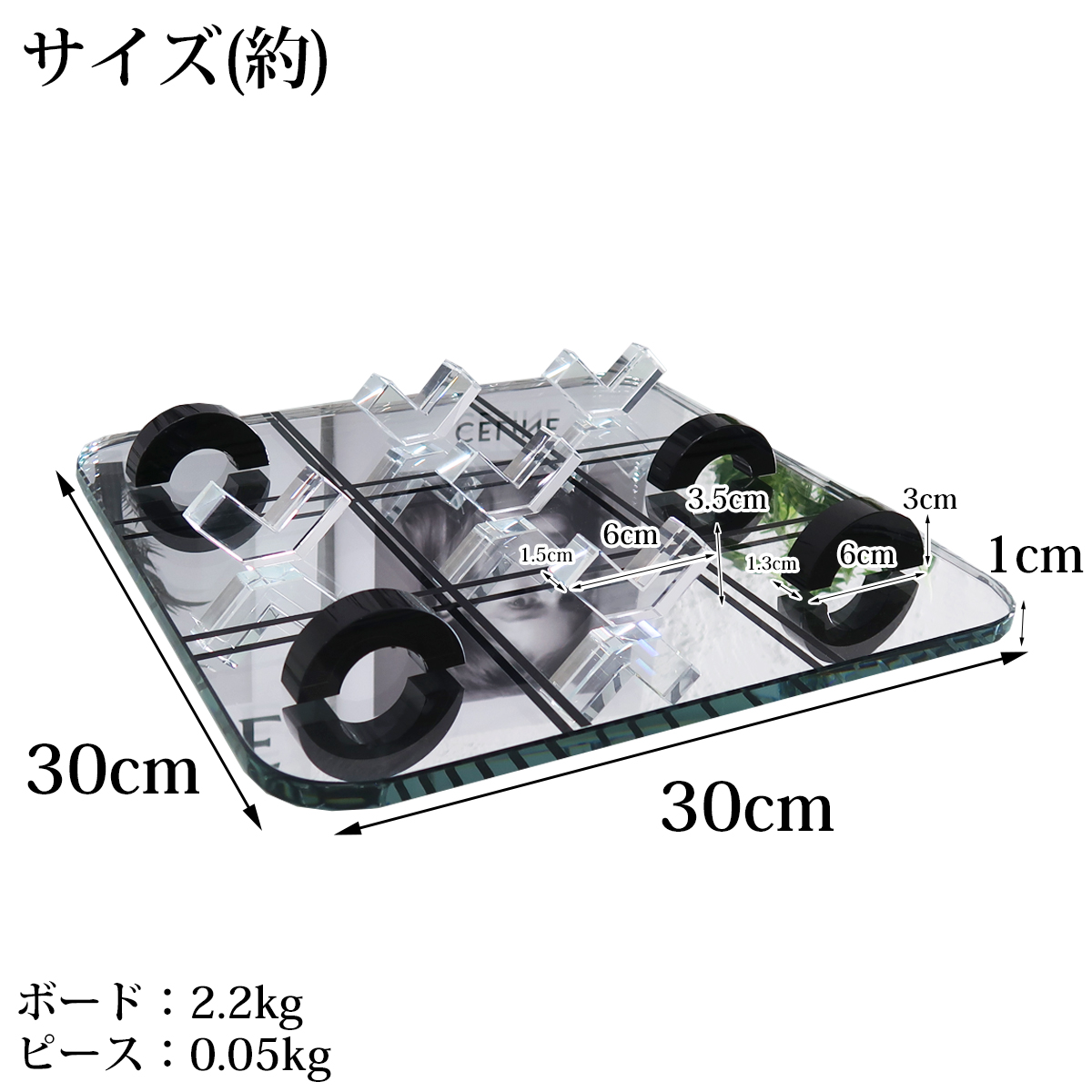 アクリルのピースに鏡面ガラスのボードがアクセント。