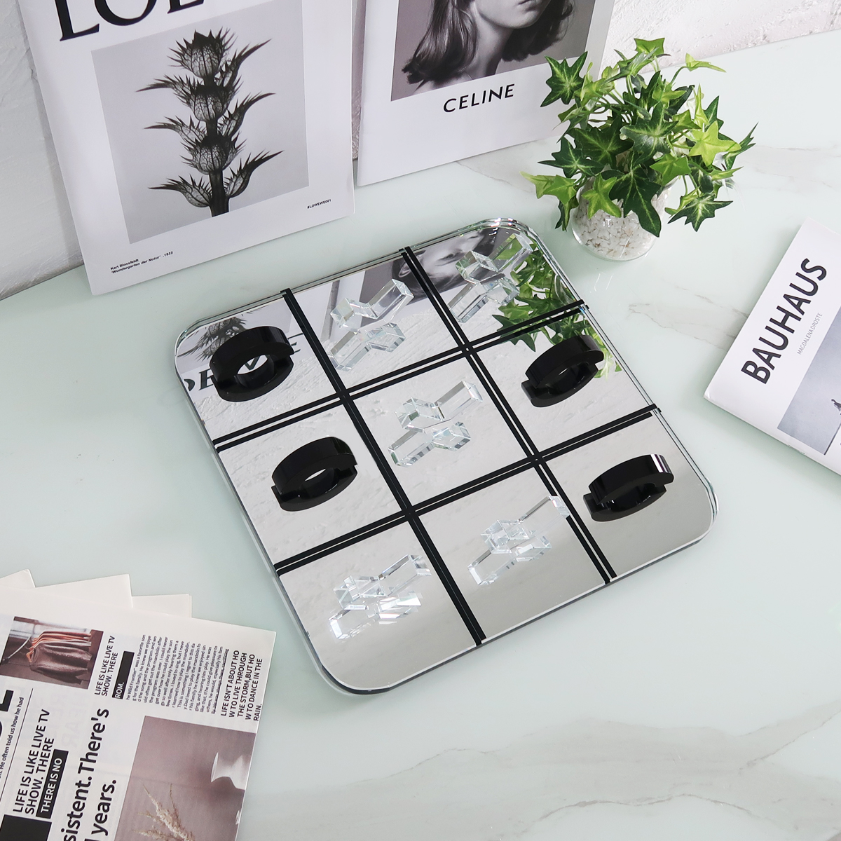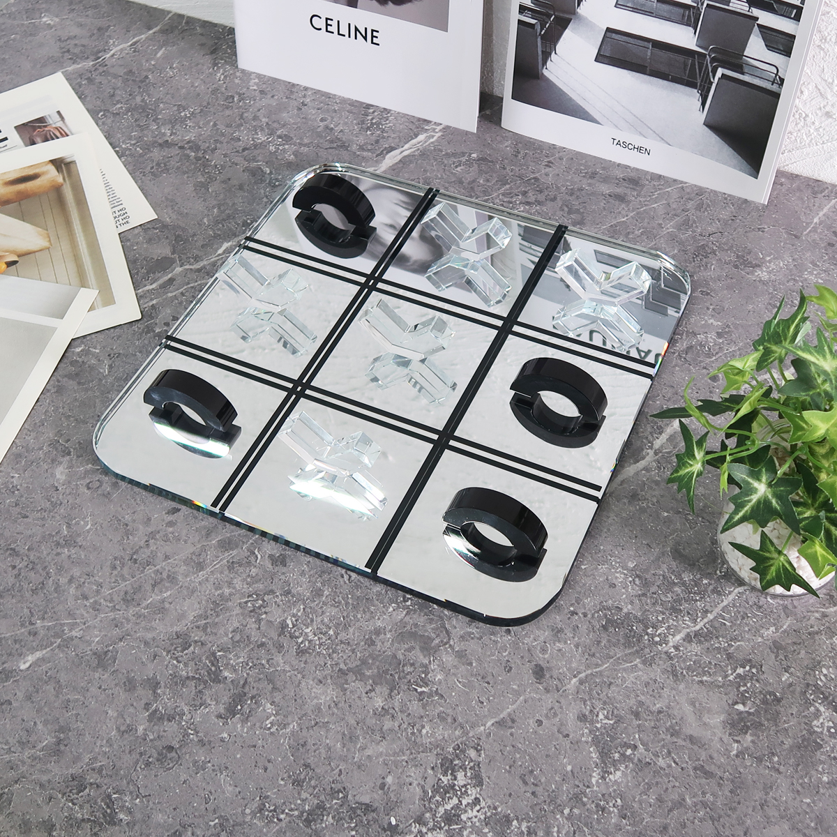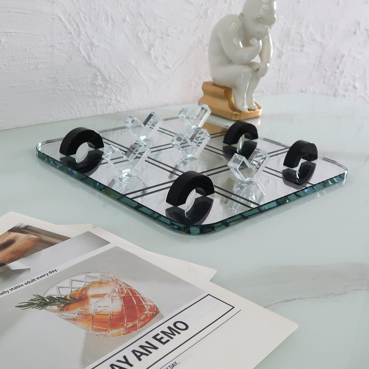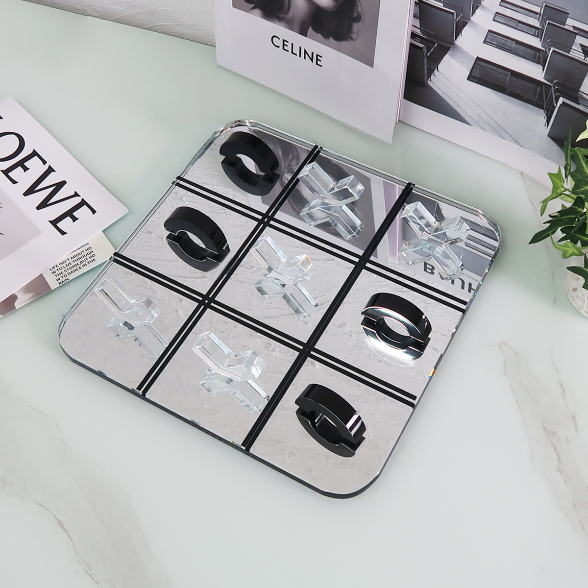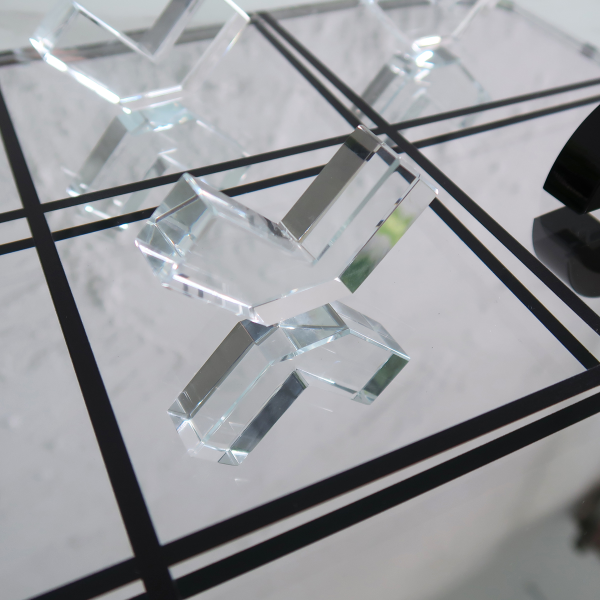 ガラスとアクリルで出来たチックタックトゥ(三目並べ)オブジェ。