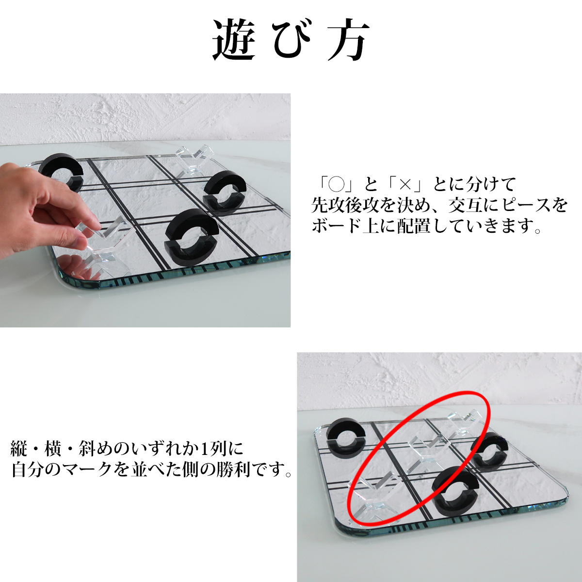 上品な印象のクリスタルオブジェでありながら、モチーフが〇×ゲームというポップさの組み合わせが