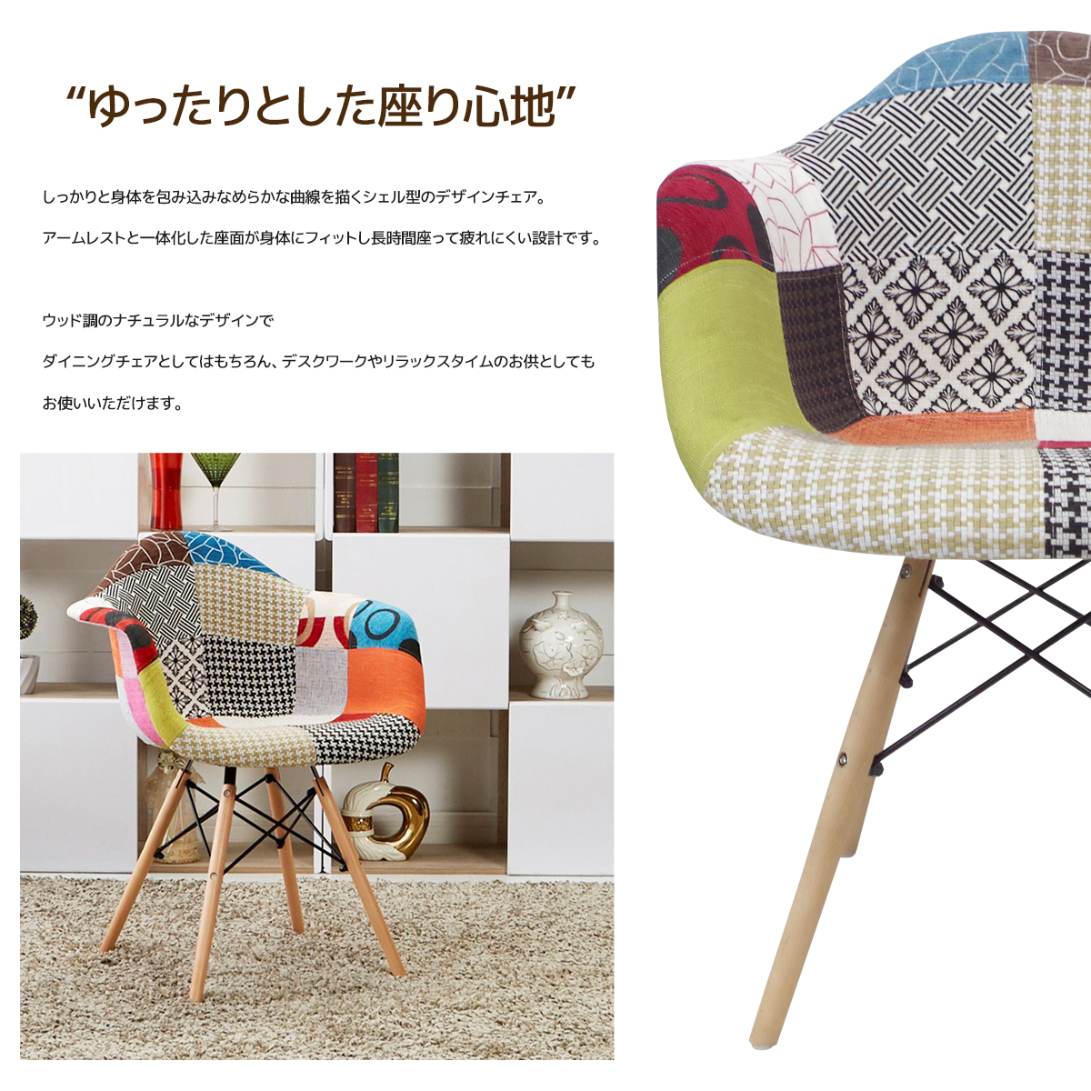 しっかりと身体を包み込みなめらかな曲線を描くシェル型のデザインチェア。