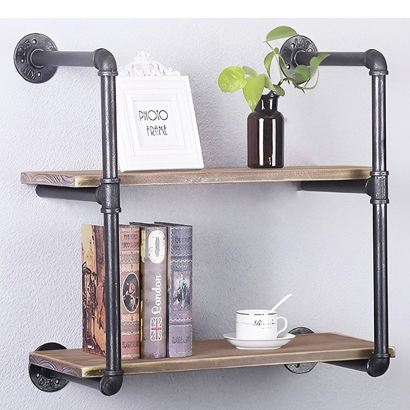 古びた感のある木目の天板と鉄製のパイプの組み合わせが