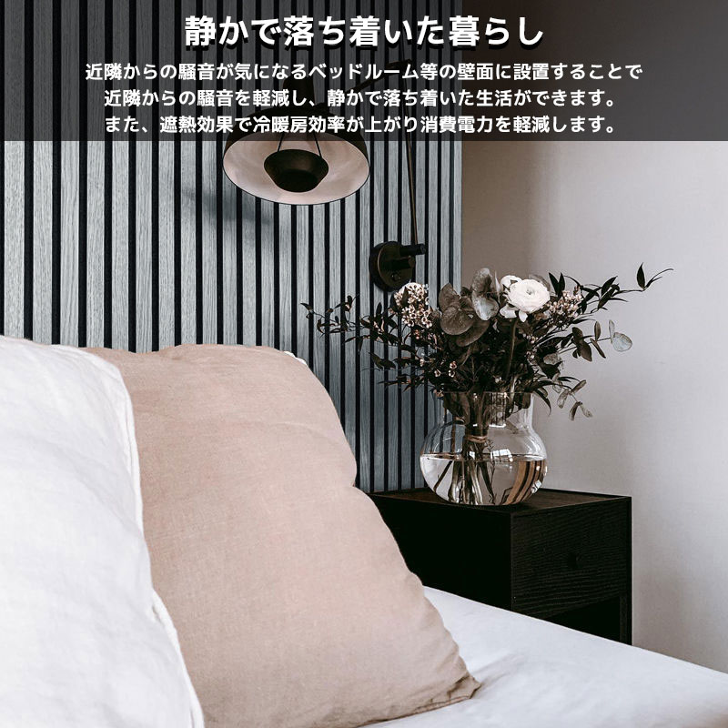 近隣からの騒音が気になるベッドルーム等の壁面に設置することで近隣からの騒音を軽減し、静かで落ち着いた生活ができます。