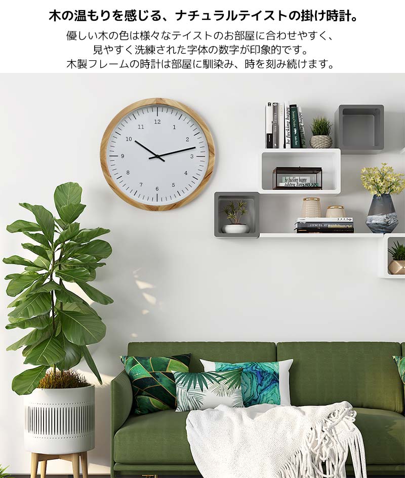 木の温もりを感じる、ナチュラルテイストの掛け時計。