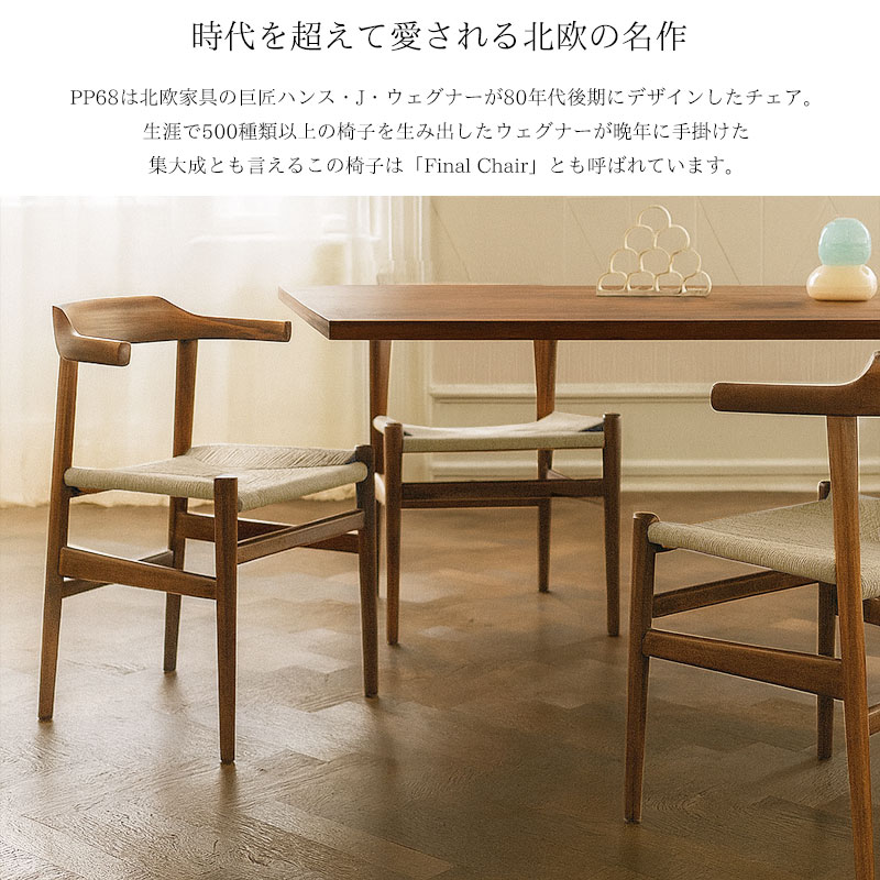 そんなPP68チェアはとてもデンマークらしい、素朴ながら繊細で耐久性に富むペーパーコードの座が特徴的です。