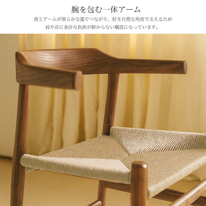 編まれた座面は座り心地も柔らかく、そのシンプルながらも高い機能性を持ったデザインからは、