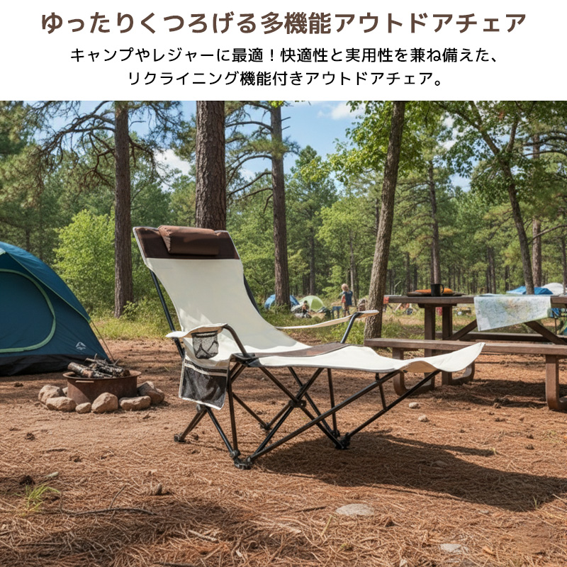 キャンプやレジャーに最適!快適性と実用性を兼ね備えた、リクライニング機能付きアウトドアチェア!