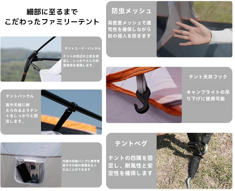 テント内にはスマホやペットボトル等が収納できる、収納ポケットがついています