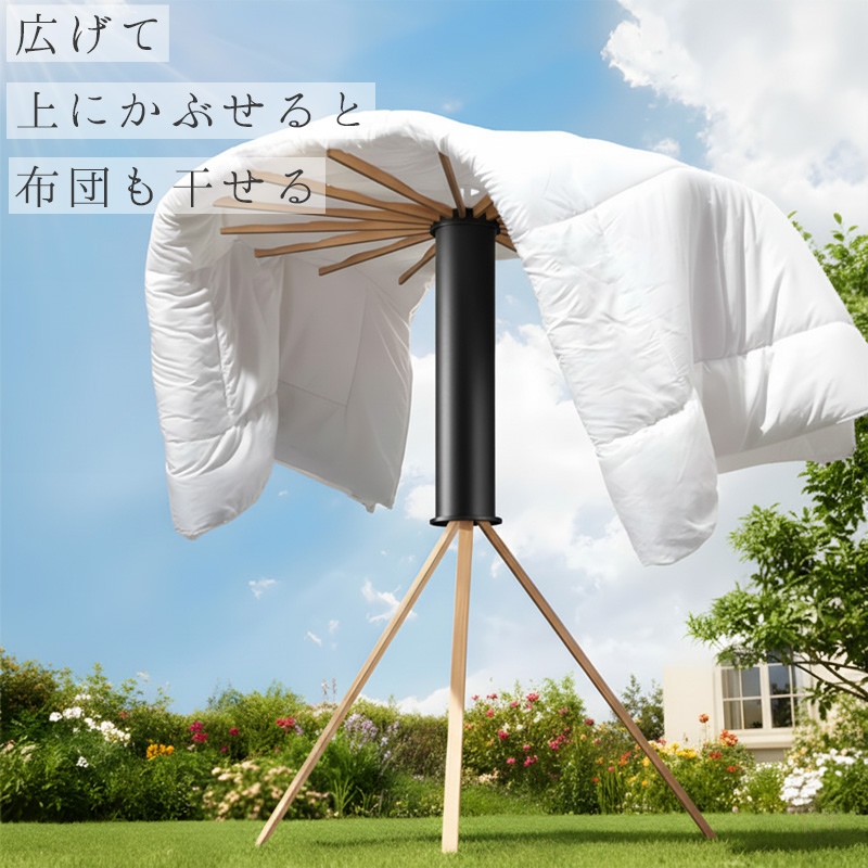 広げて上にかぶせると布団も干せるので、忙しい日常でも簡単に大きなアイテムを干すことができます。布団やシーツをしっかりと乾かせる広いスペースを確保でき、風通しが良いため、効率よく乾燥させることができます。