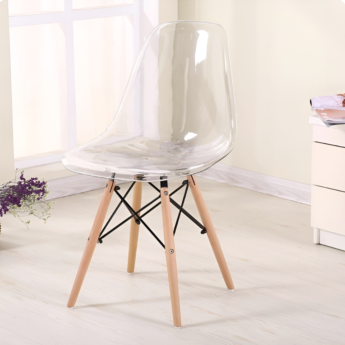 プラスチック製のクリアなカラーで圧迫感が無く、開放感あるおしゃれなイームズチェアです。