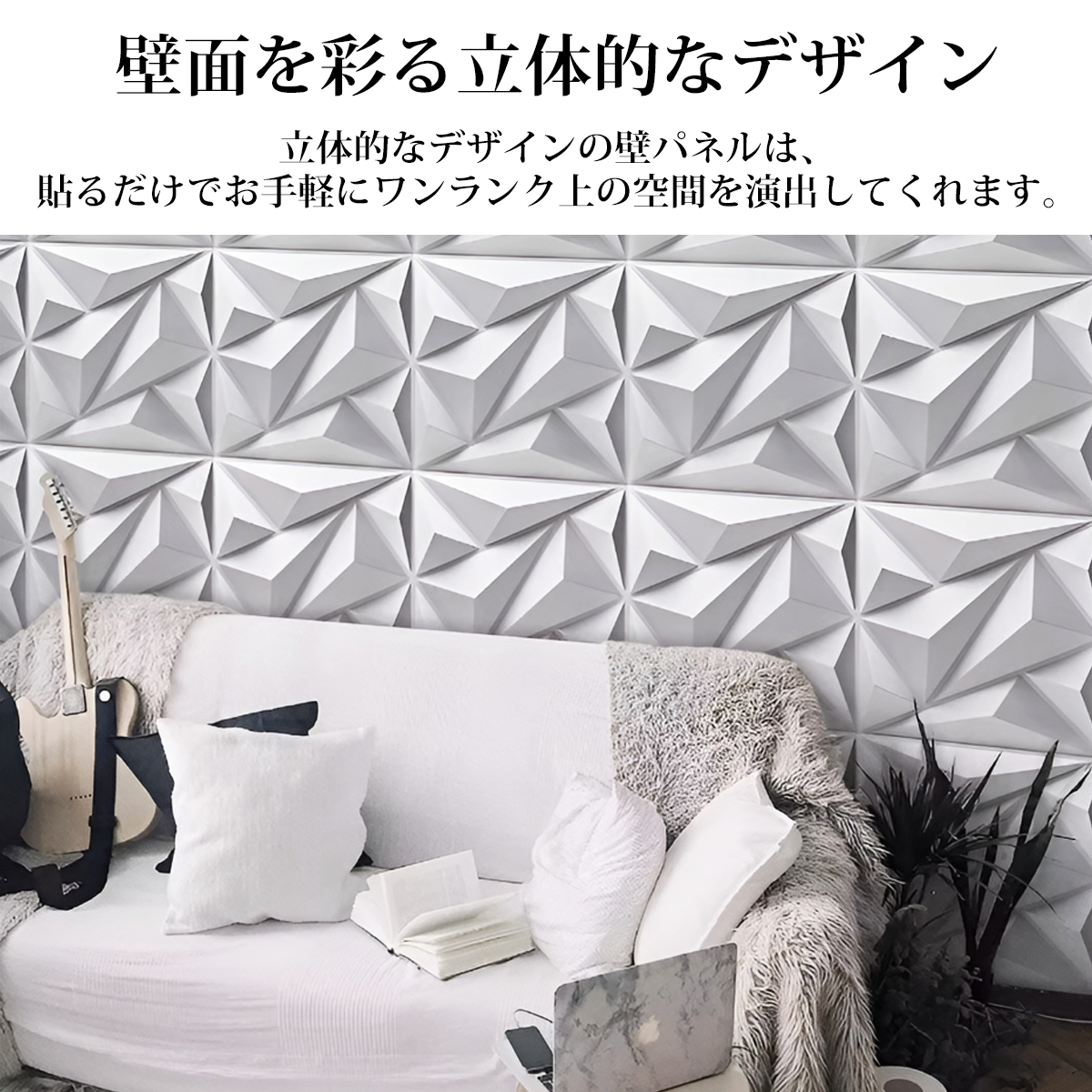 軽量デザインで耐火・防水性があるPVC製の丈夫な立体パネルです。壁全体を装飾したり、