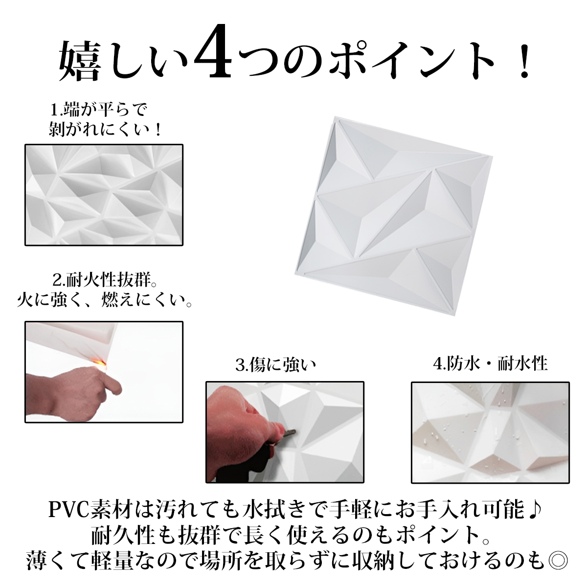軽量デザインで耐火・防水性があるPVC製の丈夫な立体パネルです。壁全体を装飾したり、
