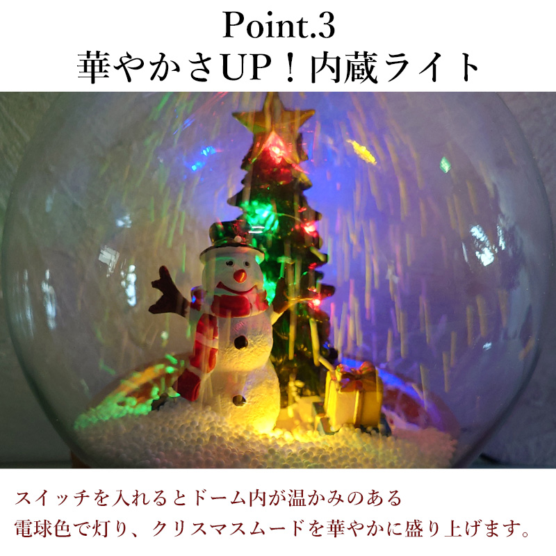 スイッチを入れるとLEDライトが優しく灯り、まるでサンタの魔法がかかったような温もりを感じられます。