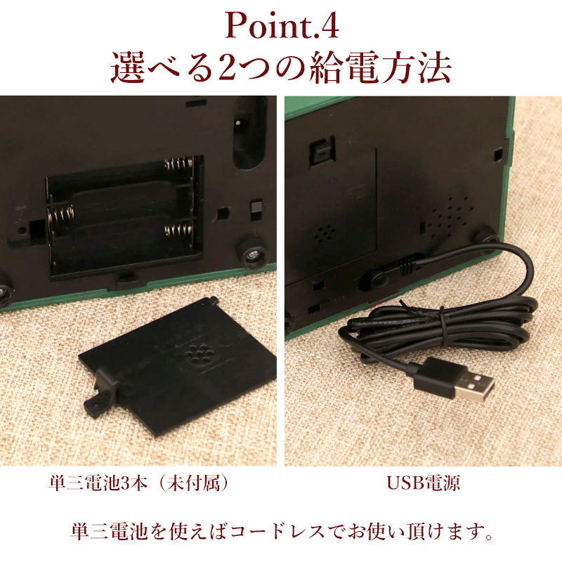 単三電池3本でコードレスとしての使用も可能!