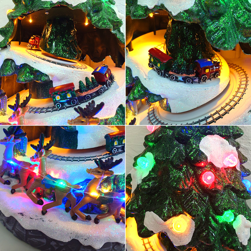 上部の星から灯る光が列車やトナカイたちを優しく照らし、昼と夜で異なる雰囲気を楽しめます。