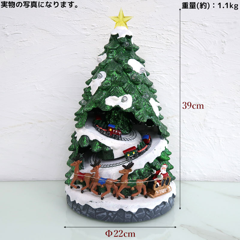 ツリーの中をミニチュア列車が走り抜ける、夢いっぱいのクリスマスオブジェです。