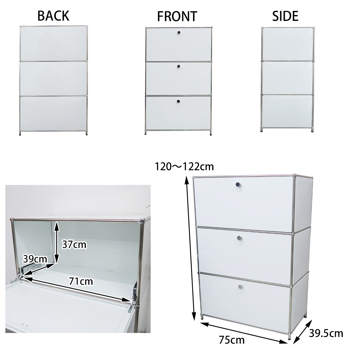 ハラー 3段 サイドボード 幅75cm ML-02WH