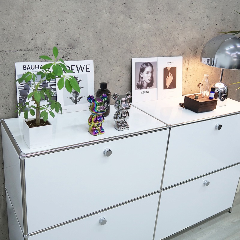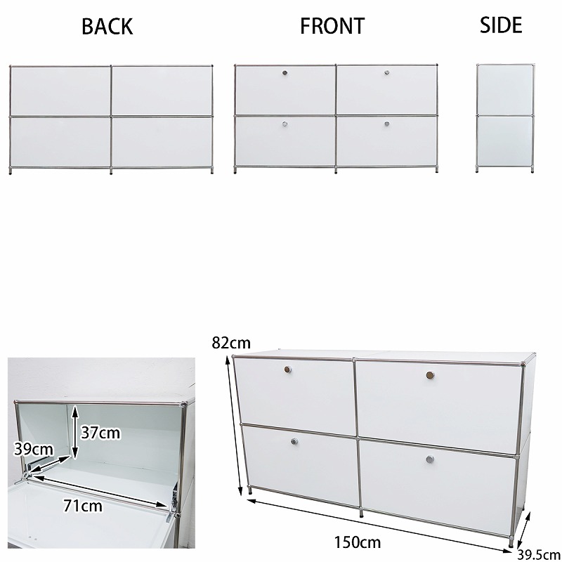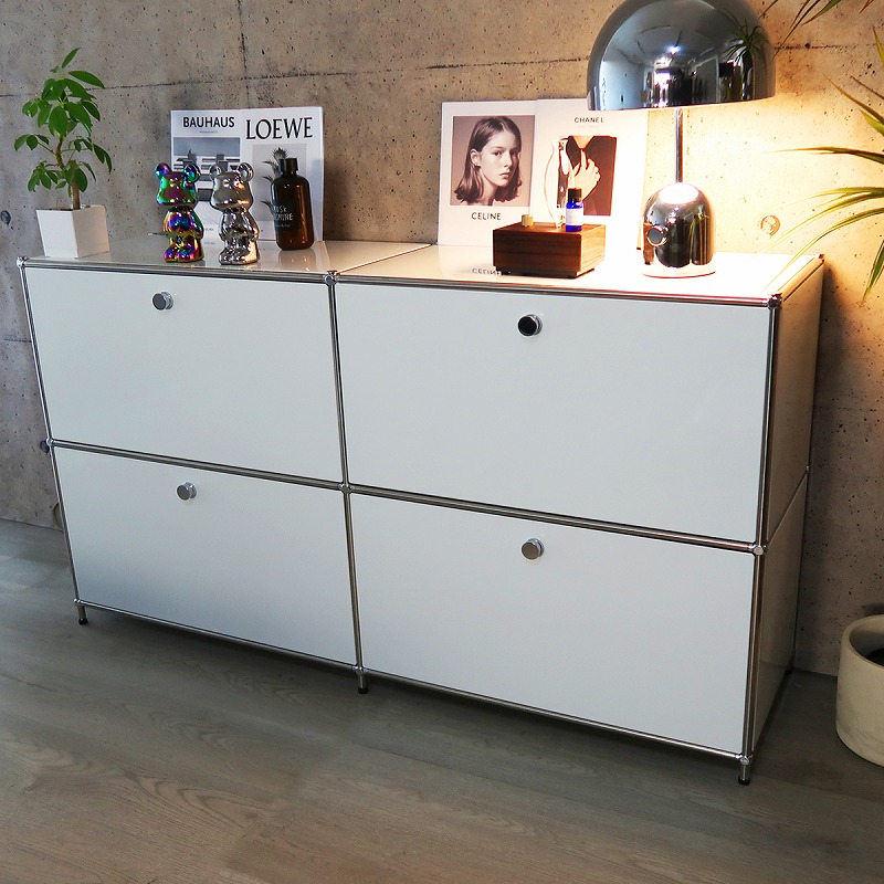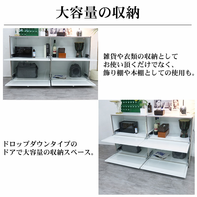 ドロップダウンドアが4つ付いた2連2段のサイドボード。