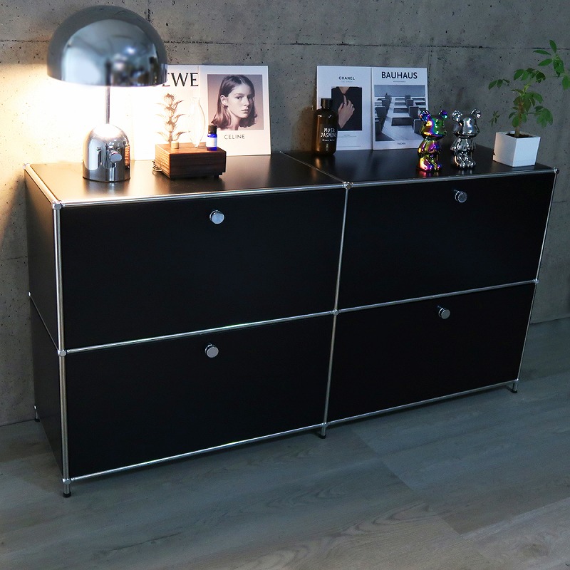 ドロップダウンドアが4つ付いた2連2段のサイドボード。