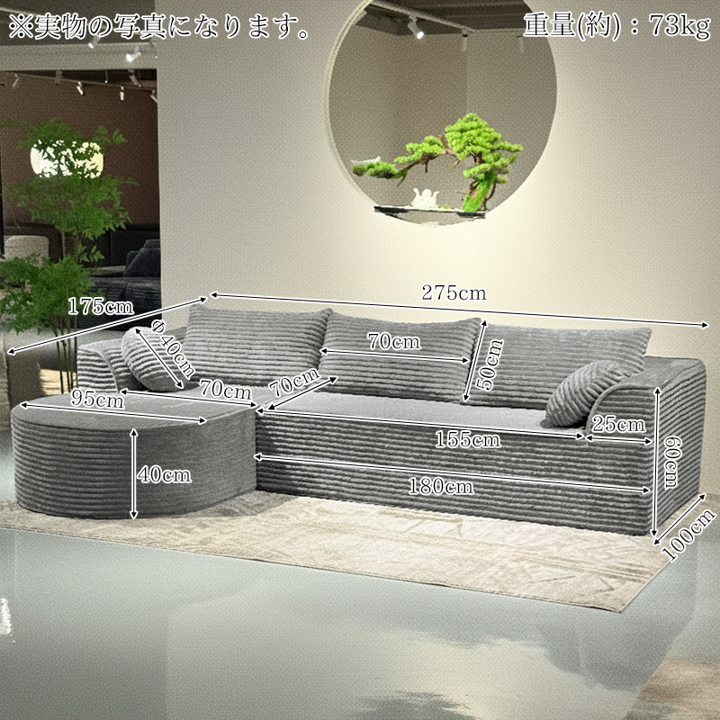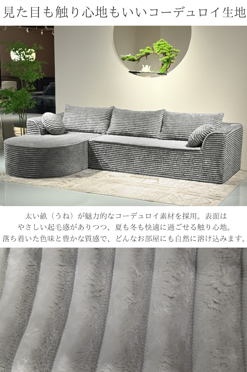 SFA-08GL コーデュロイ 圧縮 カウチソファ 275cm