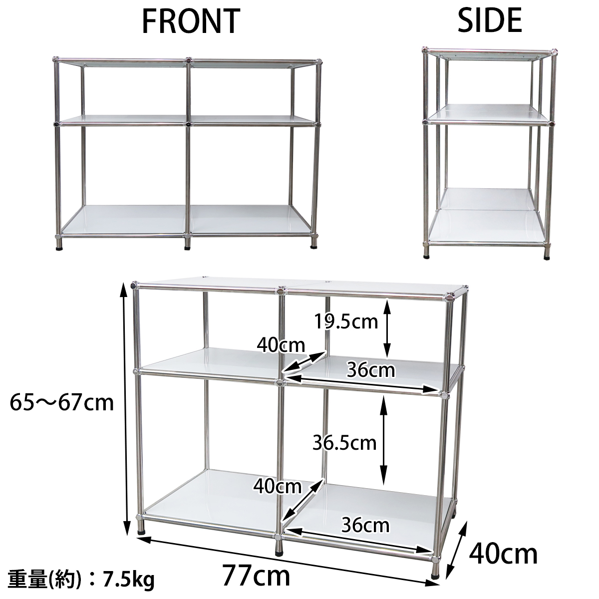 サイズ(約):幅77cm×奥行き40cm×高さ65cm(アジャスター引き伸ばし時、67cm)
