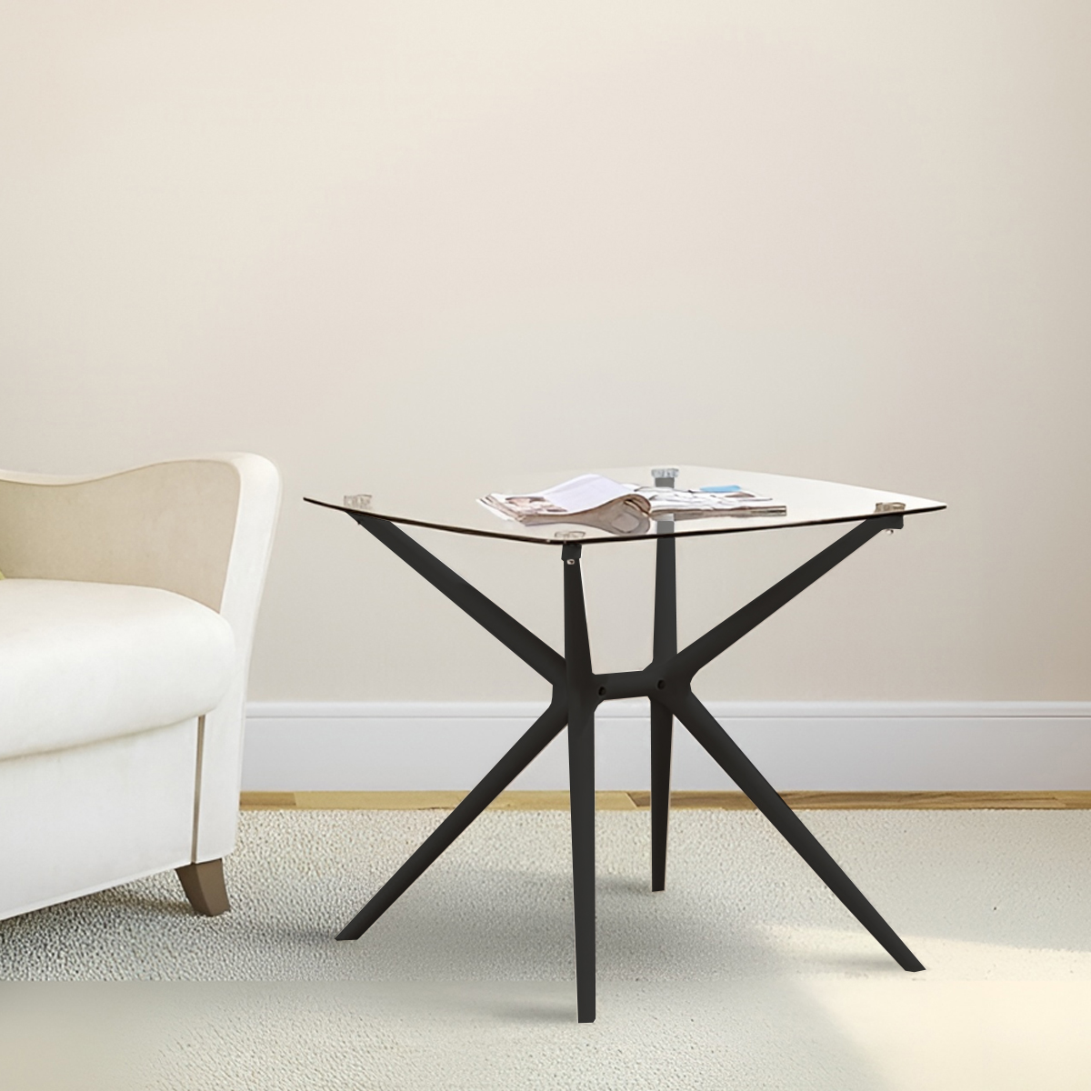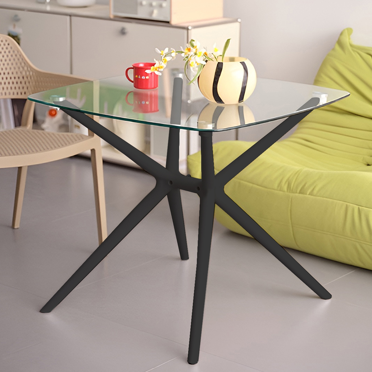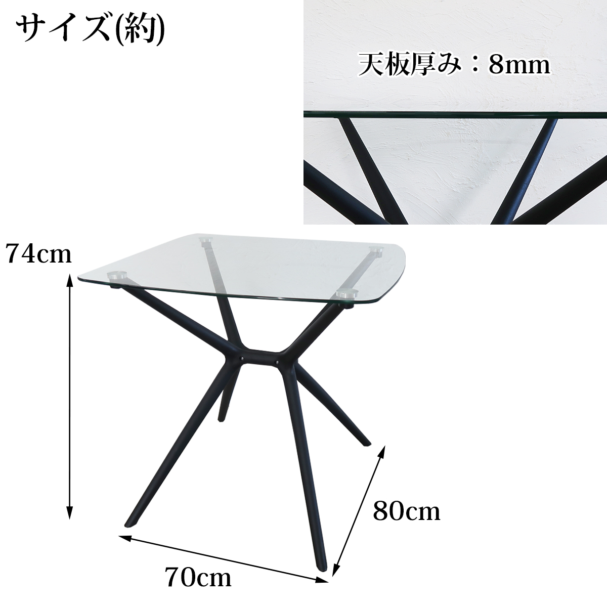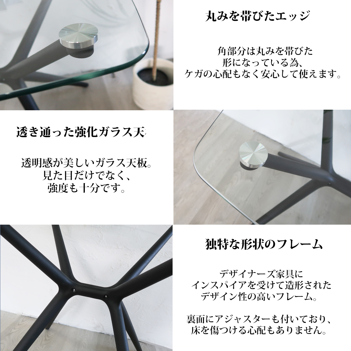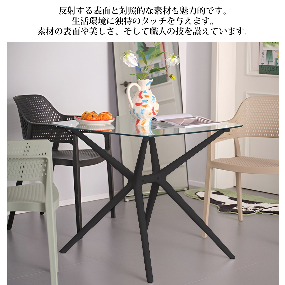 直径80cmの強化ガラス天板と、洗練されたモダンな