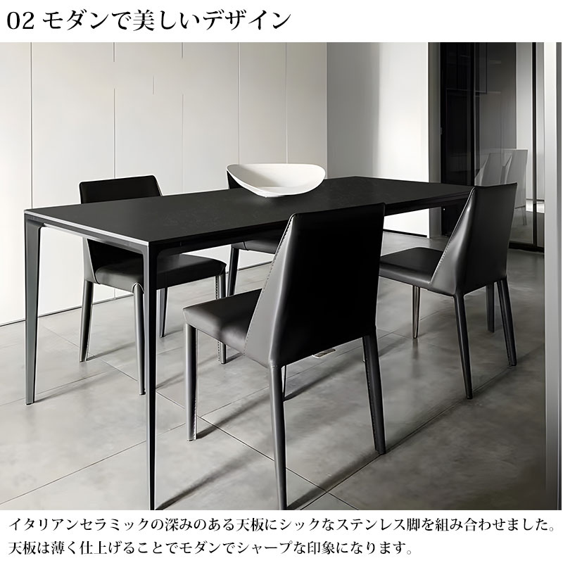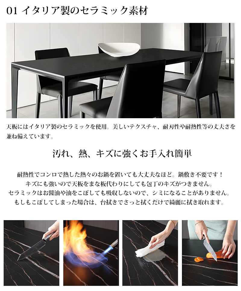 イタリアンセラミック岩盤を使用したテーブルは洗練されたデザインと高い機能性を兼ね備えた一品です。