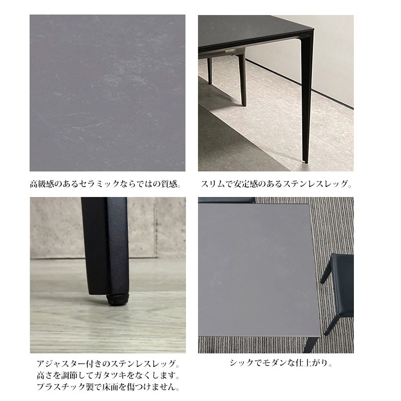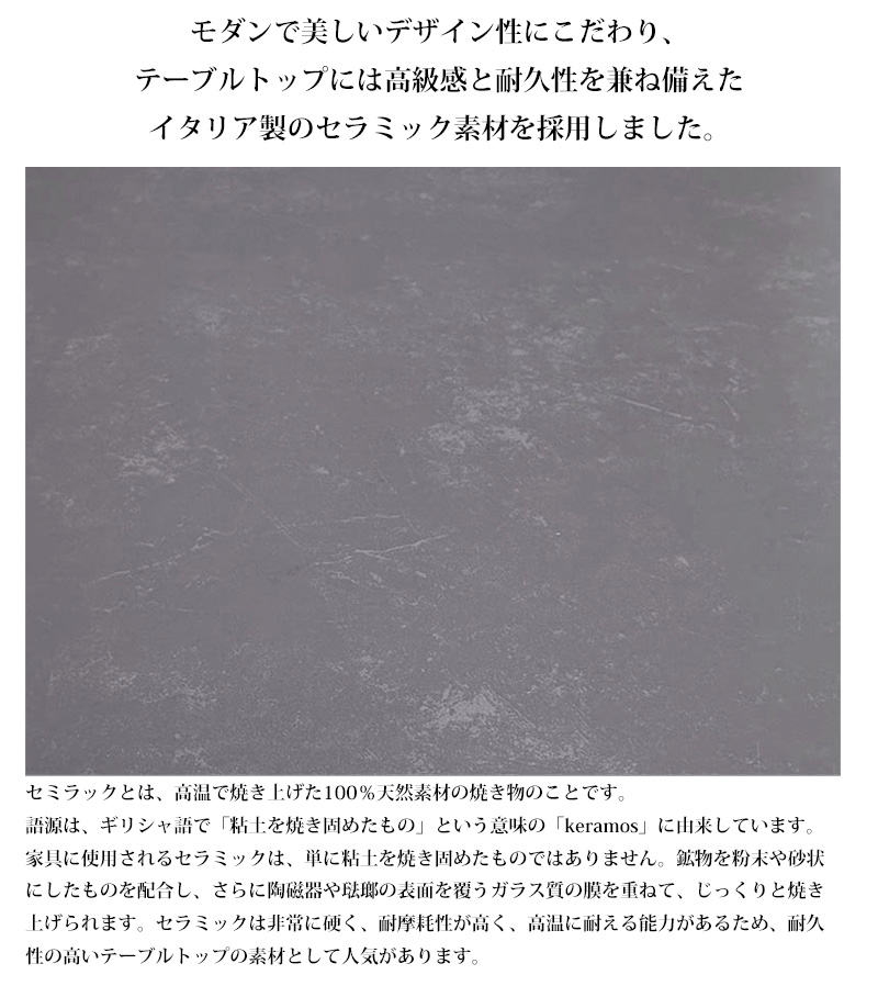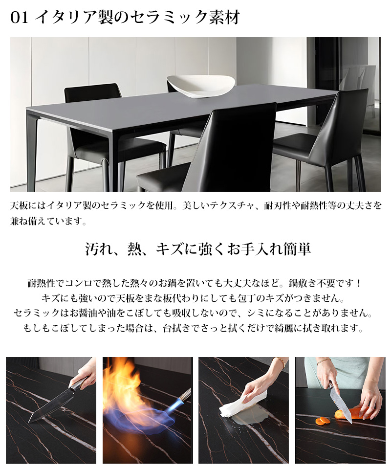 イタリアンセラミック岩盤を使用したテーブルは洗練されたデザインと高い機能性を兼ね備えた一品です。