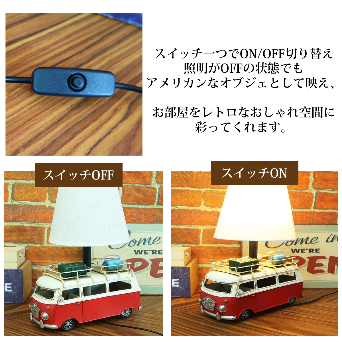 スイッチ一つでON/OFF切り替え、照明がOFFの状態でも