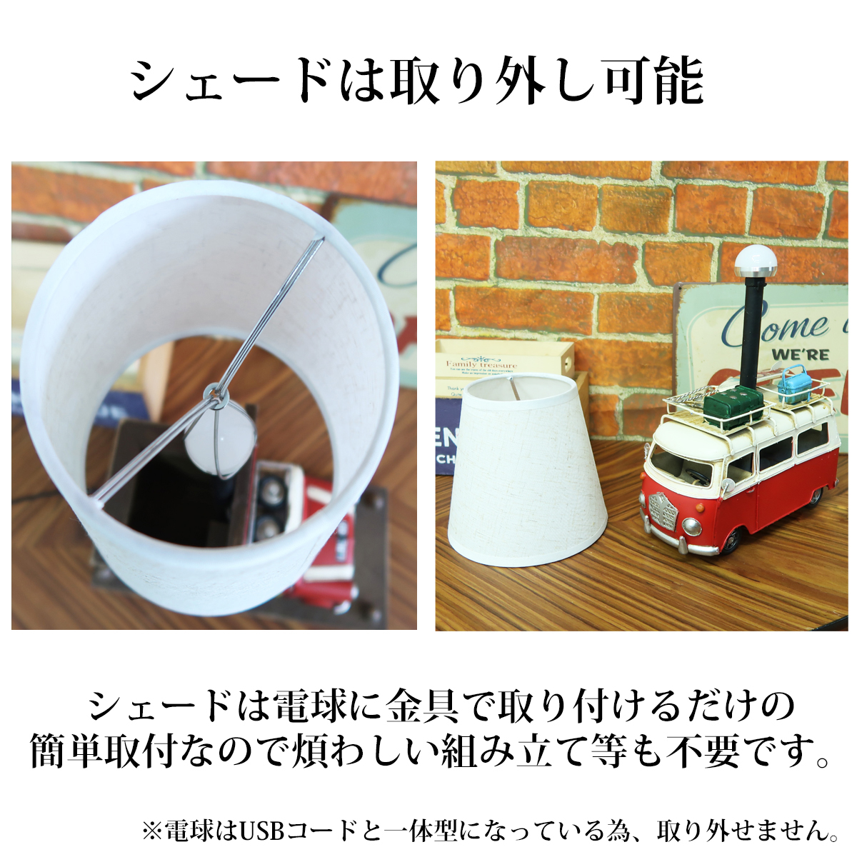 シェードは取り外し可能。