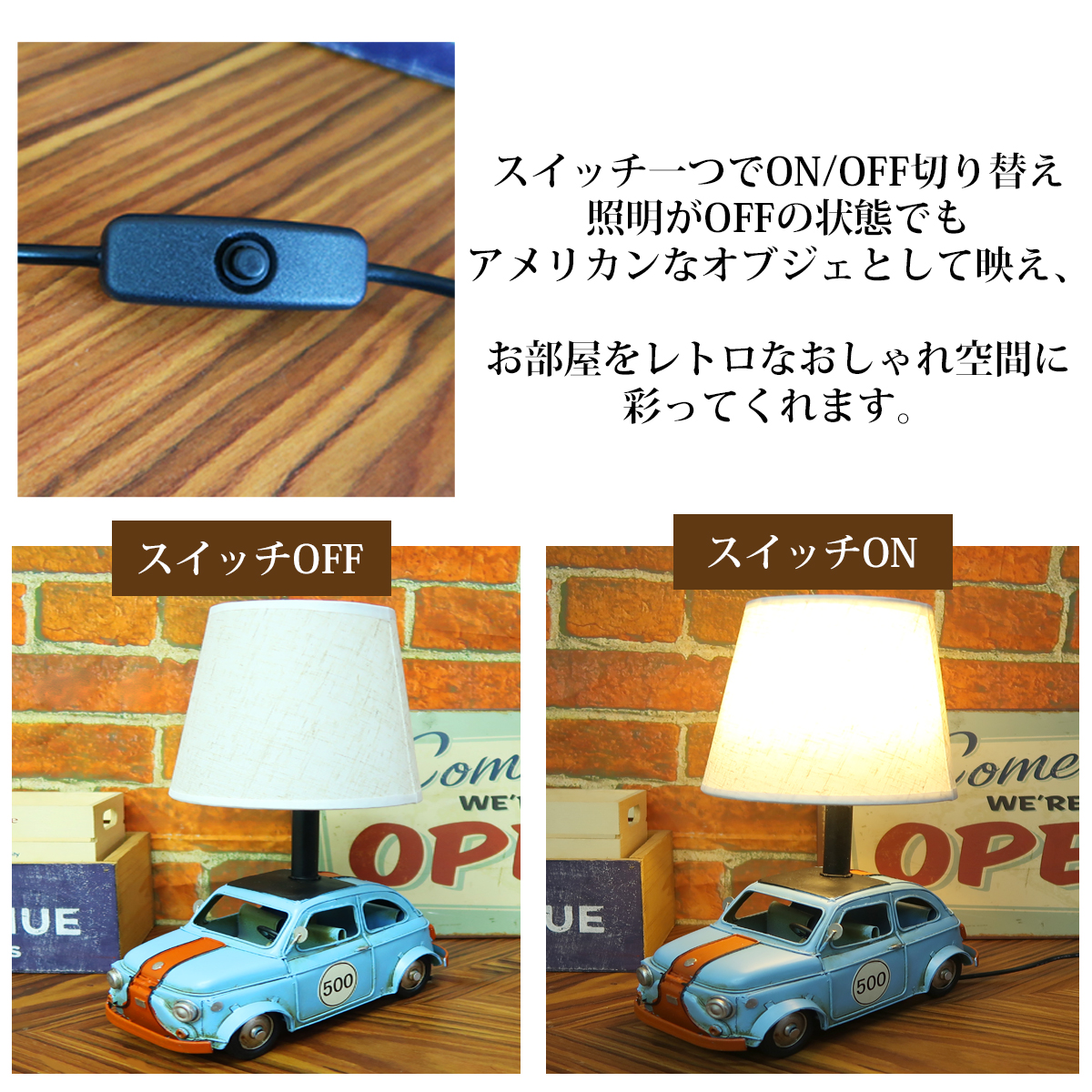 スイッチ一つでON/OFF切り替え、照明がOFFの状態でも